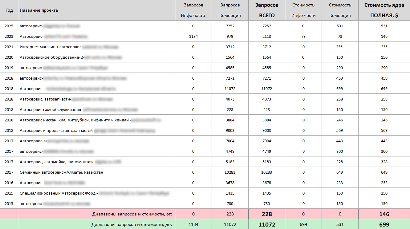 С 2013 года мы составили +18 ядер семантики для различных сайтов автомобильной тематики.