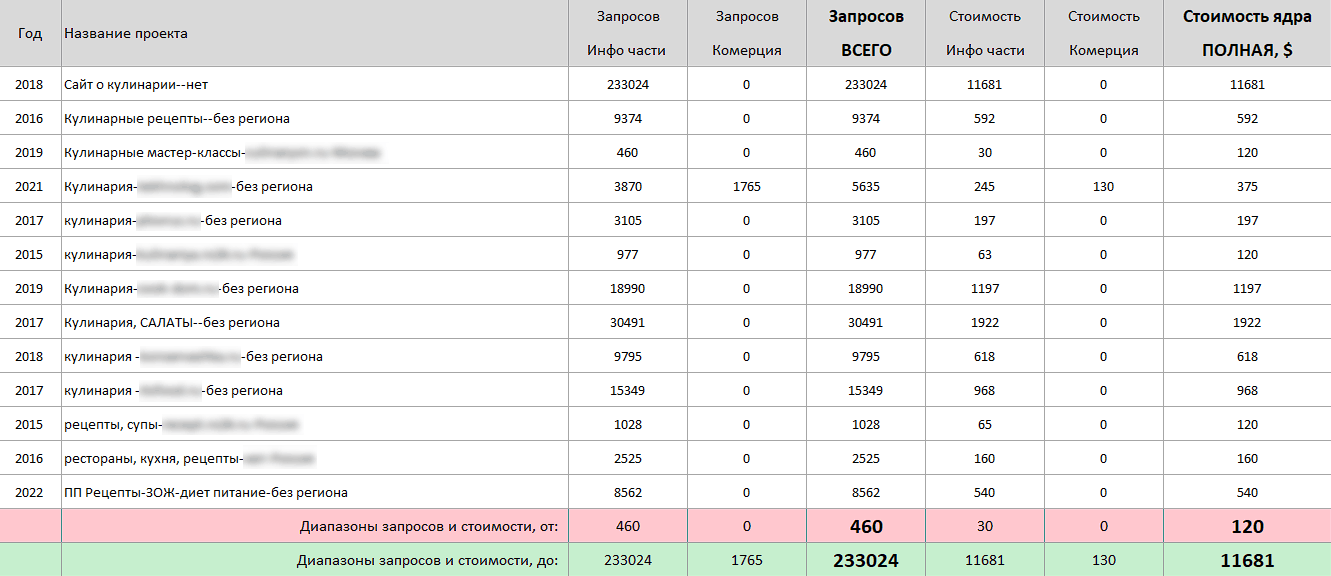 Всего с 2013 года составили 13+ ядер семантики о кулинарии, рецептах различной сложности и размеров.